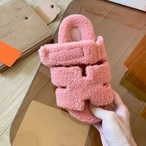 עיצוב נשים מותג פתוח הבוהן נעלי ספורט בהיר ורוד פרווה ורוד Furry Furry Furry Furry Furry חם בחוץ